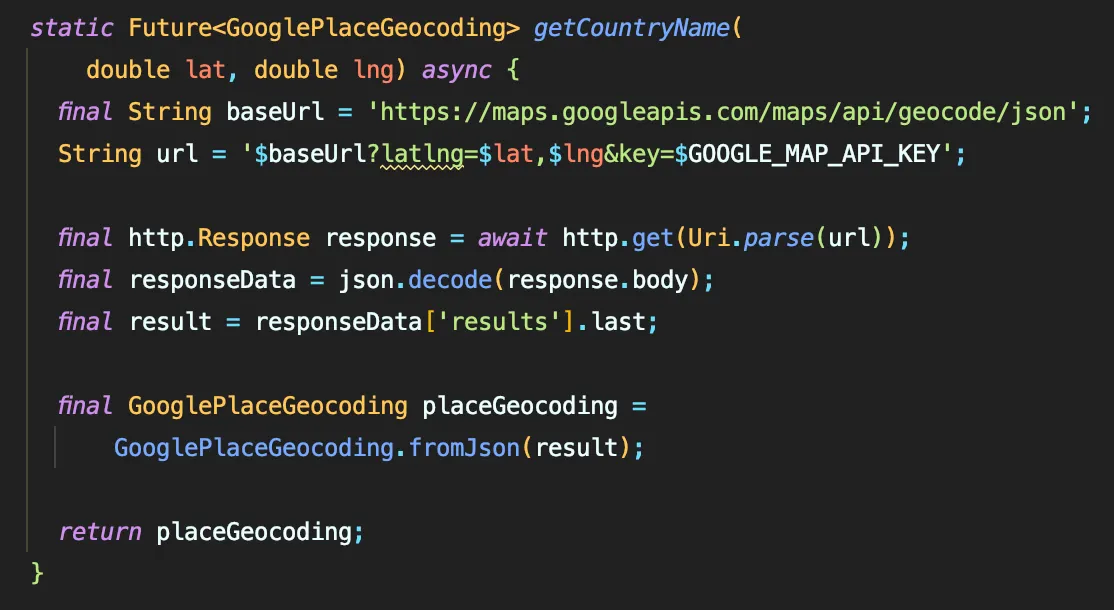 geolocator 패키지를 연결 후 사용자의 위도와 경도를 받는다.